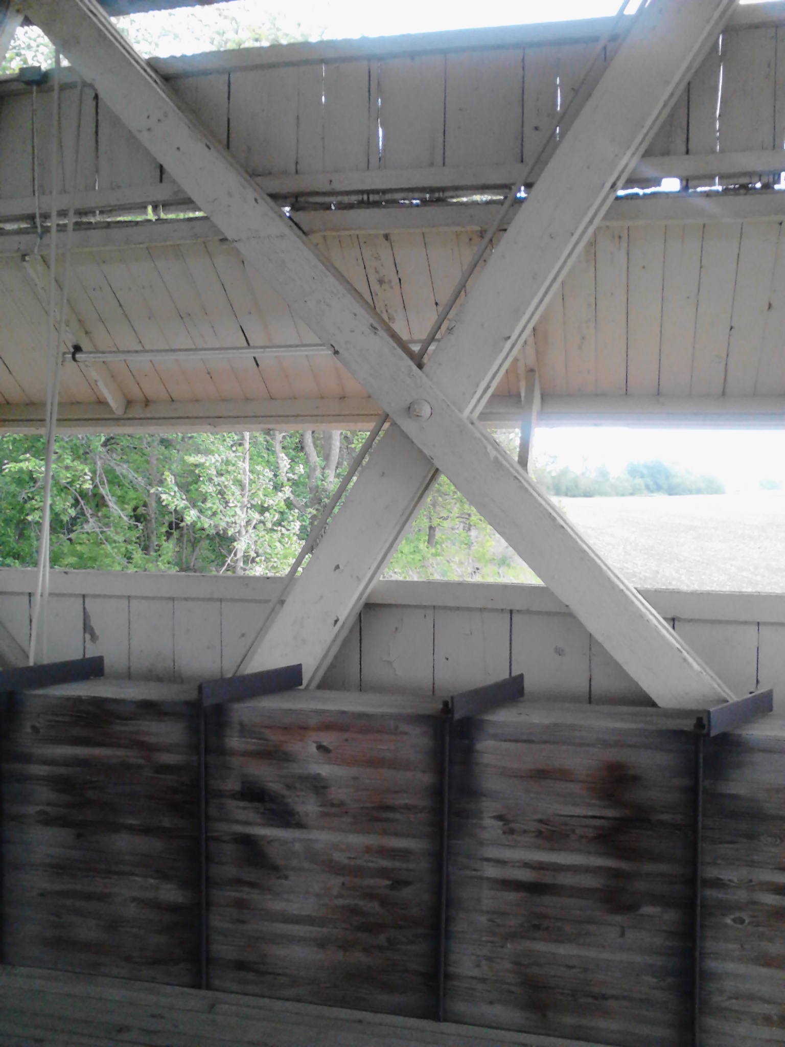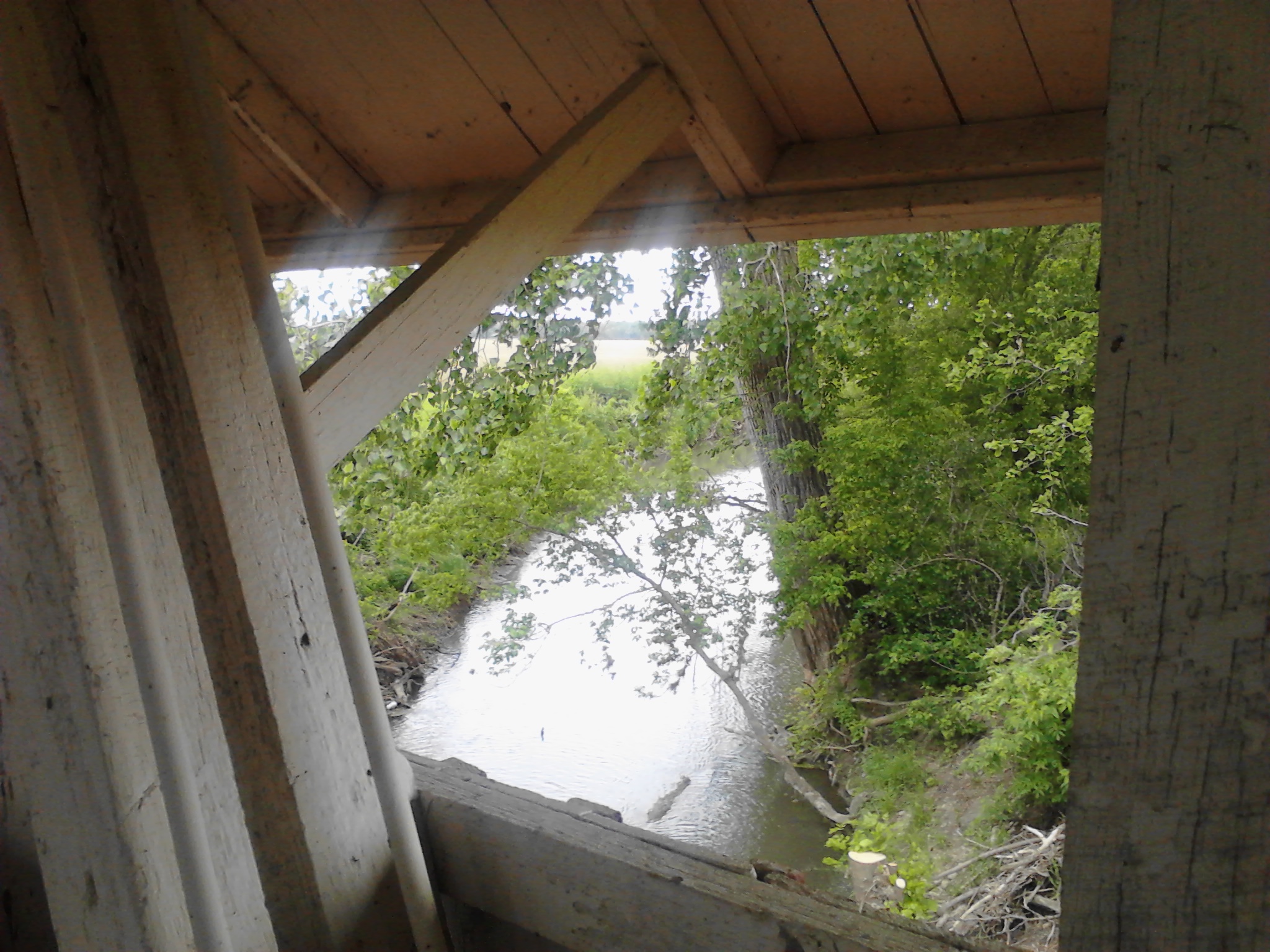Interior of the Culbertson Covered Bridge looking at another bridge beside the Culbertson Bridge. The wooden bridge cannot handle the weight of some of the modern vehicles using this road, the a smaller bridge was built to handle the heavier traffic.